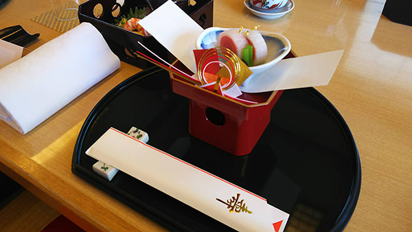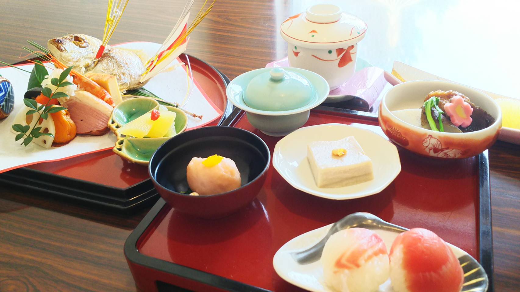 (祝い鯛、手まり寿司、小鉢、お吸い物、茶わん蒸し、果物 他…)¥6,000