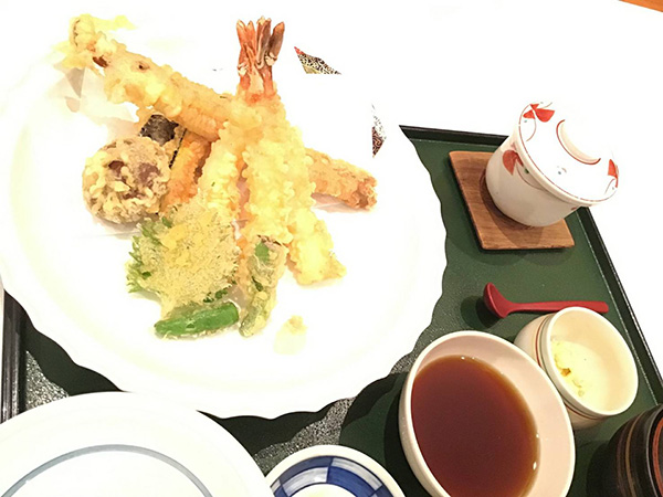 (刺身、天ぷら、小鉢、茶碗蒸し、ご飯、汁、香の物)